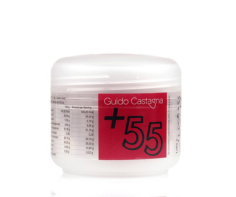 55 è una Crema di Nocciola con una percentuale del 68% di Nocciole Piemonte IGP, unica nel suo genere. E’ riconosciuta fra le migliori a livello internazionale da diversi anni. Grazie all’elevata presenza di nocciole e alla raffinazione finissima 55 è una vera e propria esperienza di gusto, da provare assolutamente.
